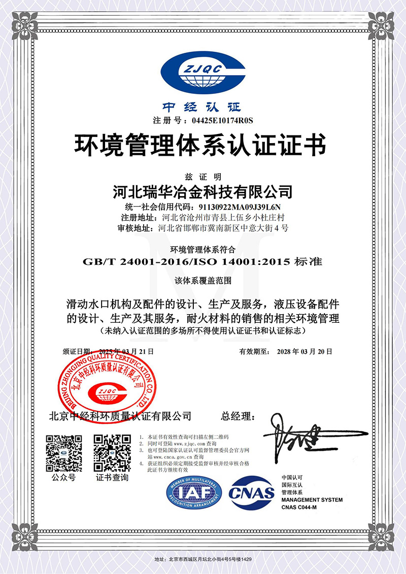 环境管理体系认证证书
