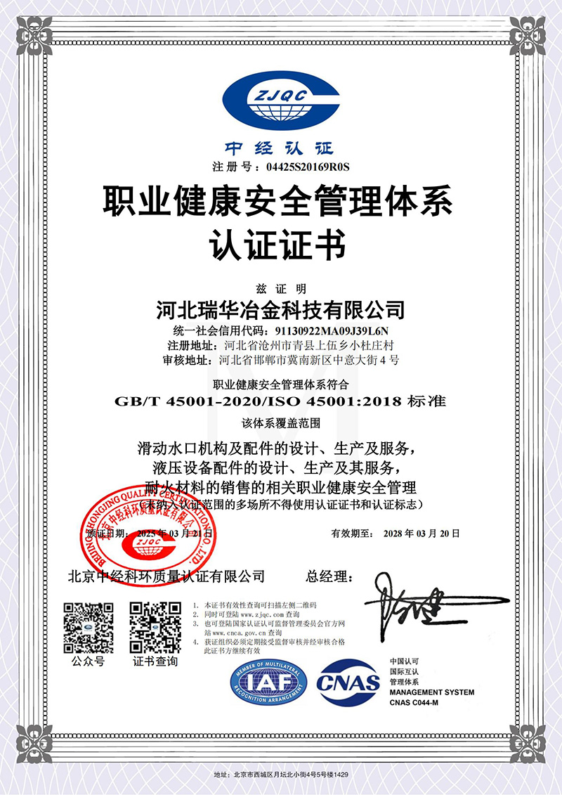 职业健康体系认证证书