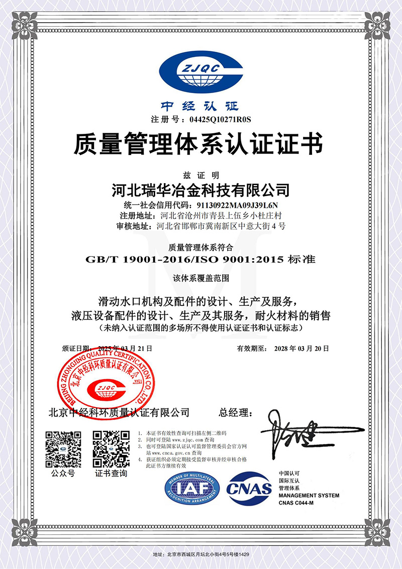 质量管理体系认证证书